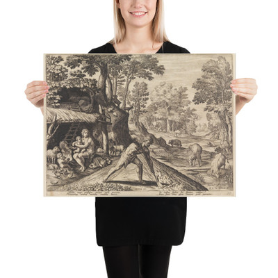 Adam at Work after the Fall from The Story of the First Men - Johann Sadeler I - 1583 - Canvas Museum quality 7742204