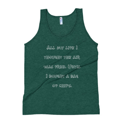 quick view American Apparel All my life I thought the air was free. Until I bought a bag of chips. - American Apparel - Unisex Soft Tri-Blend Tank PRINT-42126 MSRP: $26.99 bTR408W Unisex Soft TriBlend Tank/bbr/This tank features a loose drape, perfect for the summer heat or for layering Its made of an ultrasoft triblend fabric br/ 50 Polyester/25 Cotton/25... Add to Wish List Add to My Wish List Create New Wish List