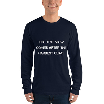 quick view American Apparel The best view comes after the hardest climb. - American Apparel - Unisex Fine Jersey Long Sleeve T-Shirt PRINT-28230 MSRP: $32.98 b2007 Unisex Fine Jersey Long Sleeve TShirt/bbr/This longsleeved shirt is made of the ultrasmooth American Apparel cotton, and it has comfy long sleeves to protect you from the elements The sleeves... Add to Wish List Add to My Wish List Create New Wish List