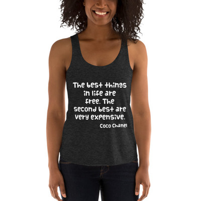 quick view American Apparel The best things in life are free. The second best are very expensive. - Coco Chanel - American Apparel - Women's Tri-Blend Racerback Tank PRINT-41854 MSRP: $25.70 bTR308W Womens TriBlend Racerback Tank/bbr/A flattering tank with generously cut arm openings and a slim racerback, made of an ultrasoft triblend fabric for a more vintage feel br/ 50... Add to Wish List Add to My Wish List Create New Wish List