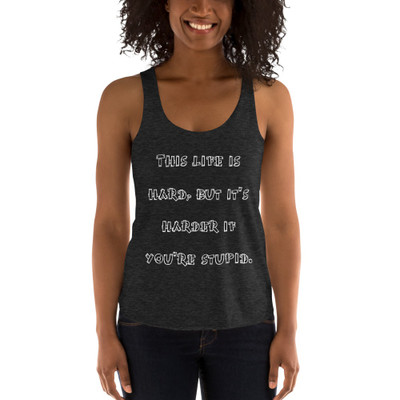 quick view American Apparel This life is hard, but it's harder if you're stupid. - American Apparel - Women's Tri-Blend Racerback Tank PRINT-42108 MSRP: $25.70 bTR308W Womens TriBlend Racerback Tank/bbr/A flattering tank with generously cut arm openings and a slim racerback, made of an ultrasoft triblend fabric for a more vintage feel br/ 50... Add to Wish List Add to My Wish List Create New Wish List