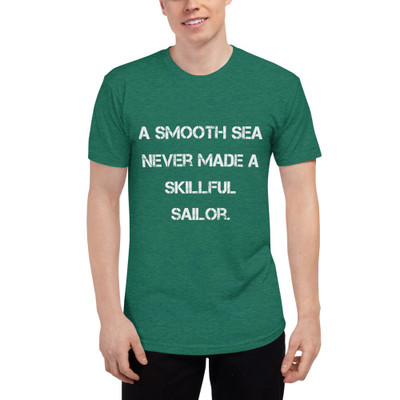 quick view American Apparel A smooth sea never made a skillful sailor. - American Apparel - Unisex Tri-Blend Short Sleeve Track Shirt MSRP: $30.21 TR401 Unisex Tri-Blend Short Sleeve Track ShirtEnjoy a brand new crew neck track shirt with a fit, feel and durability of a well-loved vintage piece. This tri-blend track t-shirt is made from a mix... Add to Wish List Add to My Wish List Create New Wish List