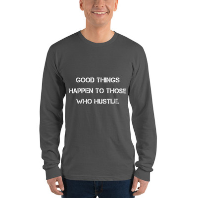 quick view American Apparel Good things happen to those who hustle. - American Apparel - Unisex Fine Jersey Long Sleeve T-Shirt PRINT-28137 MSRP: $32.98 b2007 Unisex Fine Jersey Long Sleeve TShirt/bbr/This longsleeved shirt is made of the ultrasmooth American Apparel cotton, and it has comfy long sleeves to protect you from the elements The sleeves... Add to Wish List Add to My Wish List Create New Wish List
