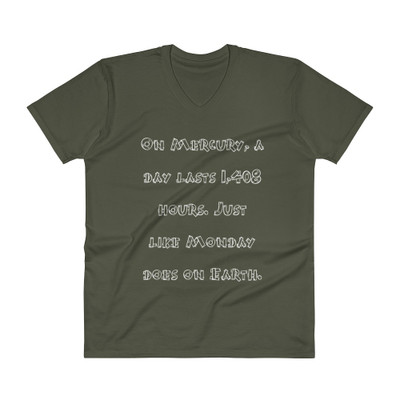quick view Anvil On Mercury, a day lasts 1,408 hours. Just like Monday does on Earth. - Anvil - Lightweight Fashion V-Neck T-Shirt PRINT-36721 MSRP: $23.13 b982 Lightweight Fashion VNeck TShirt/bbr/This lightweight cotton tee is easy and breezy with a semifitted vneck to complement any collection Its a classic staple that everyone should own Comes... Add to Wish List Add to My Wish List Create New Wish List