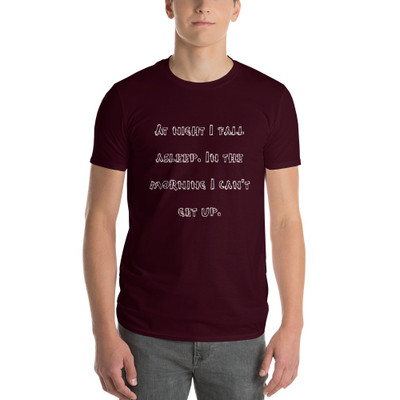 quick view Anvil At night I fall asleep. In the morning I can't get up. - Anvil - Lightweight Fashion Short Sleeve T-Shirt PRINT-37512 MSRP: $22.67 b980 Lightweight Fashion Short Sleeve TShirt/bbr/This thick cotton tshirt makes for a goto wardrobe staple Its comfortable, soft, and its tubular construction means its less fitted br/ 100... Add to Wish List Add to My Wish List Create New Wish List