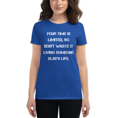 quick view Anvil Your time is limited, so don't waste it living someone else's life. - Anvil - Ladies Ringspun Fashion Fit T-Shirt MSRP: $25.29 880 Ladies Ringspun Fashion Fit T-ShirtYour typical 100% cotton t-shirt (except for heather colors, which contain 10% polyester). Pre-shrunk to make sure your size is maintained throughout several... Add to Wish List Add to My Wish List Create New Wish List