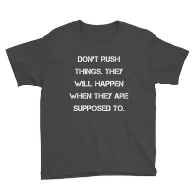 quick view Anvil Don't rush things. They will happen when they are supposed to. - Anvil - Youth Lightweight Fashion T-Shirt MSRP: $21.90 990B Youth Lightweight Fashion T-ShirtA lightweight youth tee, made of 100% cotton (except for heather colors, which contain polyester). Comes pre-shrunk so the fit stays the same over time and... Add to Wish List Add to My Wish List Create New Wish List