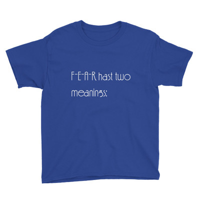quick view Anvil F-E-A-R hast two meanings: - Anvil - Youth Lightweight Fashion T-Shirt MSRP: $20.71 990B Youth Lightweight Fashion T-ShirtA lightweight youth tee, made of 100% cotton (except for heather colors, which contain polyester). Comes pre-shrunk so the fit stays the same over time and... Add to Wish List Add to My Wish List Create New Wish List