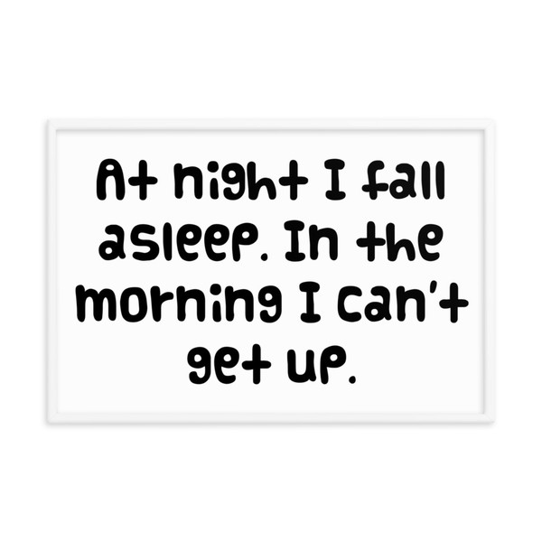 At night I fall asleep. In the morning I can't get up. - Enhanced Matte Paper Framed Poster
