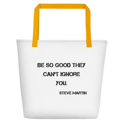 quick view Be so good they can't ignore you. - Steve Martin - Beach Bag Motivational quotes 7833287 MSRP: $35.80 All-Over Print Beach BagA trendy beach bag, where you can put everything that matters when hitting those warm beaches. • 100% polyester fabric • Maximum weight limit – 44lbs (20kg) • Large inside pocket • Comfortable cotton webbing handles •... Add to Wish List Add to My Wish List Create New Wish List Compare