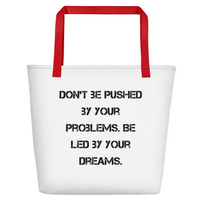 quick view Don't be pushed by your problems. Be led by your dreams. - Beach Bag Motivational quotes 7833099 MSRP: $35.80 All-Over Print Beach BagA trendy beach bag, where you can put everything that matters when hitting those warm beaches. • 100% polyester fabric • Maximum weight limit – 44lbs (20kg) • Large inside pocket • Comfortable cotton webbing handles •... Add to Wish List Add to My Wish List Create New Wish List Compare