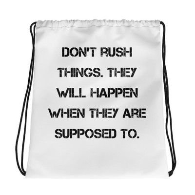 quick view Don't rush things. They will happen when they are supposed to. - Drawstring Bag Motivational quotes 7832189 MSRP: $25.70 All-Over Print Drawstring BagCombine your love for vibrant prints and a sporty style with a cool drawstring bag. It"s a must-have gym essential that can be worn as a backpack with drawstring closure at top, and narrow, contrasting shoulder straps. •... Add to Wish List Add to My Wish List Create New Wish List Compare