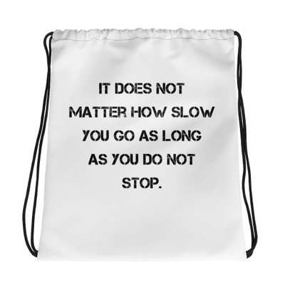 quick view It does not matter how slow you go as long as you do not stop. - Drawstring Bag Motivational quotes 7832504 MSRP: $25.70 All-Over Print Drawstring BagCombine your love for vibrant prints and a sporty style with a cool drawstring bag. It"s a must-have gym essential that can be worn as a backpack with drawstring closure at top, and narrow, contrasting shoulder straps. •... Add to Wish List Add to My Wish List Create New Wish List Compare