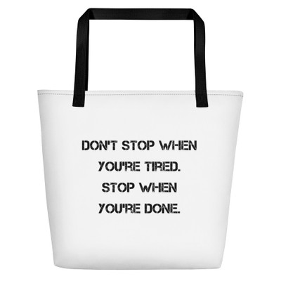 quick view Don't stop when you're tired. Stop when you're done. - Beach Bag Motivational quotes 7832244 MSRP: $37.30 All-Over Print Beach BagA trendy beach bag, where you can put everything that matters when hitting those warm beaches. • 100% polyester fabric • Maximum weight limit – 44lbs (20kg) • Large inside pocket • Comfortable cotton webbing handles •... Add to Wish List Add to My Wish List Create New Wish List Compare