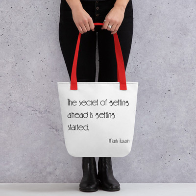 quick view The secret of getting ahead is getting started. - Mark Twain - Tote Motivational quotes 7852611 MSRP: $25.91 All-Over Print ToteA spacious and trendy tote bag to help you carry around everything that matters. • 100% spun polyester fabric • Bag 15" x 15" (38.1cm x 38.1cm) • Capacity – 2.6 US gal (10l) • Maximum weight limit – 44lbs (20kg) • Dual... Add to Wish List Add to My Wish List Create New Wish List Compare