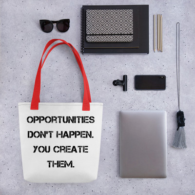 quick view Opportunities don't happen. You create them. - Tote Motivational quotes 7815696 MSRP: $26.99 All-Over Print ToteA spacious and trendy tote bag to help you carry around everything that matters. • 100% spun polyester fabric • Bag 15" x 15" (38.1cm x 38.1cm) • Capacity – 2.6 US gal (10l) • Maximum weight limit – 44lbs (20kg) • Dual... Add to Wish List Add to My Wish List Create New Wish List Compare