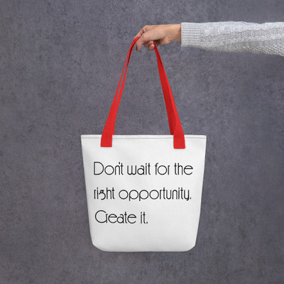 quick view Don't wait for the right opportunity. Create it. - Tote Motivational quotes 7852711 MSRP: $25.91 All-Over Print ToteA spacious and trendy tote bag to help you carry around everything that matters. • 100% spun polyester fabric • Bag 15" x 15" (38.1cm x 38.1cm) • Capacity – 2.6 US gal (10l) • Maximum weight limit – 44lbs (20kg) • Dual... Add to Wish List Add to My Wish List Create New Wish List Compare