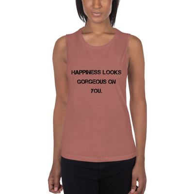 quick view Bella + Canvas Happiness looks gorgeous on you. - Bella + Canvas - Women's Flowy Muscle Tank PRINT-27269 MSRP: $32.93 b8803 Womens Flowy Muscle Tank/bbr/This comfortable muscle tank is soft and flowy with low cut armholes for a relaxed look br/ 65 polyester/35 viscose br/ Low cut armholes br/ Curved bottom... Add to Wish List Add to My Wish List Create New Wish List