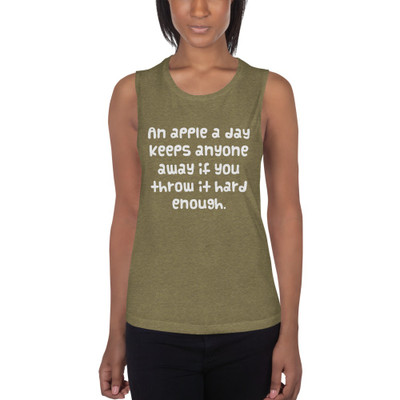 quick view Bella + Canvas An apple a day keeps anyone away if you throw it hard enough. - Bella + Canvas - Women's Flowy Muscle Tank PRINT-49561 MSRP: $28.28 b8803 Womens Flowy Muscle Tank/bbr/This comfortable muscle tank is soft and flowy with low cut armholes for a relaxed look br/ 65 polyester/35 viscose br/ Low cut armholes br/ Curved bottom... Add to Wish List Add to My Wish List Create New Wish List