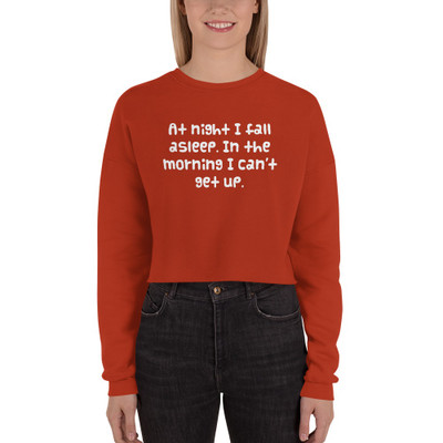 quick view Bella + Canvas At night I fall asleep. In the morning I can't get up. - Bella + Canvas - Women's Fleece Crop Sweatshirt PRINT-54237 MSRP: $42.62 b7503 Womens Fleece Crop Sweatshirt/bbr/Did you know that fashion and comfort can be combined This fleece crop sweatshirt is here to prove the point The soft fabric feels extra soft to the touch, and... Add to Wish List Add to My Wish List Create New Wish List