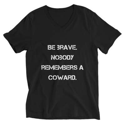 quick view Bella + Canvas Be brave. Nobody remembers a coward. - Bella + Canvas - Unisex Short Sleeve V-Neck Jersey Tee MSRP: $27.63 3005 Unisex Short Sleeve V-Neck Jersey TeeThis unisex tee has a classic v-neck cut and fits like a well-loved favorite. • Made of 100% combed and ringspun cotton • Pre-shrunk fabric • Unisex... Add to Wish List Add to My Wish List Create New Wish List