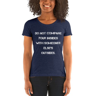 quick view Bella + Canvas Do not compare your insides with someones else's outsides. - Bella + Canvas - Ladies' Triblend Short Sleeve T-Shirt MSRP: $27.63 8413 Ladies" Triblend Short Sleeve T-ShirtA super-soft, form-fitting, breathable t-shirt with a slightly lower neckline than a classic t-shirt. • Tri-blend construction (50% polyester/25%... Add to Wish List Add to My Wish List Create New Wish List