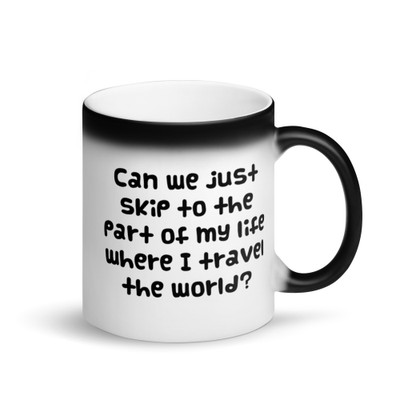 Can we just skip to the part of my life where I travel the world? - Matte Black Magic Mug Funny quotes 7838659