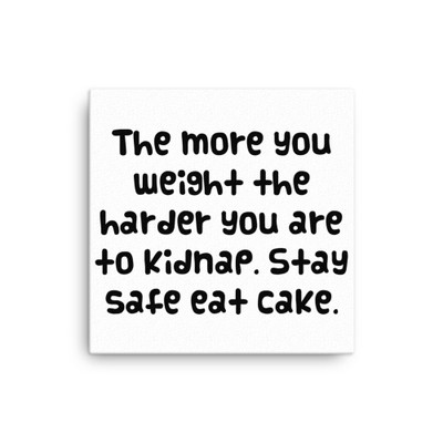quick view The more you weight the harder you are to kidnap. Stay safe eat cake. - Canvas Funny quotes 7818884 MSRP: $118.64 CanvasLooking to add a little flair to your room or office? Look no further - this canvas print has a vivid, fade-resistant print that you"re bound to fall in love with. • Fade-resistant • 20.5 mil thick poly-cotton blend canvas • Hand-stretched... Add to Wish List Add to My Wish List Create New Wish List Compare