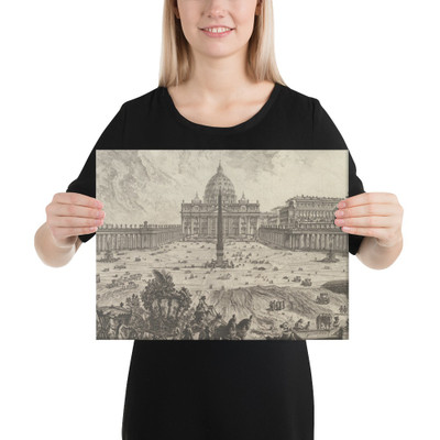 quick view View of St. Peter's Basilica and Piazza in the Vatican, from Vedute di Roma (Roman Views) - Giovanni Battista Piranesi - ca. 1748 - Canvas Museum quality 7719783 MSRP: $118.64 CanvasLooking to add a little flair to your room or office? Look no further - this canvas print has a vivid, fade-resistant print that you"re bound to fall in love with. • Fade-resistant • 20.5 mil thick poly-cotton blend canvas • Hand-stretched... Add to Wish List Add to My Wish List Create New Wish List Compare