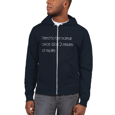 quick view American Apparel I tried to be normal once. Wort 2 minutes of my life. - American Apparel - Unisex Flex Fleece Zip Hoodie PRINT-72504 MSRP: $53.13 bF497W Unisex Flex Fleece Zip Hoodie/bbr/A sporty hoodie with a soft inside The iconic zip hoodie you see Silicon Valley big shots wearing the understated yet classic look, giving off a youthful vibe br/ Flex Fleece 50 Polyester / 50 Cotton Fleece... Add to Wish List Add to My Wish List Create New Wish List Compare