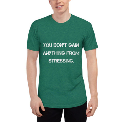 quick view American Apparel You don't gain anything from stressing. - American Apparel - Unisex Tri-Blend Short Sleeve Track Shirt PRINT-28799 MSRP: $34.47 bTR401 Unisex TriBlend Short Sleeve Track Shirt/bbr/Enjoy a brand new crew neck track shirt with a fit, feel and durability of a wellloved vintage piece This triblend track tshirt is made from a mix of polyester, cotton and rayon, which gives it a unique... Add to Wish List Add to My Wish List Create New Wish List Compare