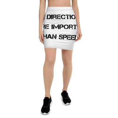 quick view The direction is more important than speed. - Pencil Skirt Motivational quotes 7811139 MSRP: $32.93 All-Over Print Pencil SkirtLook great in all-over printed, body-hugging pencil style skirt with elastic waistband. • Imported fabric: 82% polyester/18% spandex • Material has a four-way stretch, which means fabric stretches and recovers on the... Add to Wish List Add to My Wish List Create New Wish List Compare