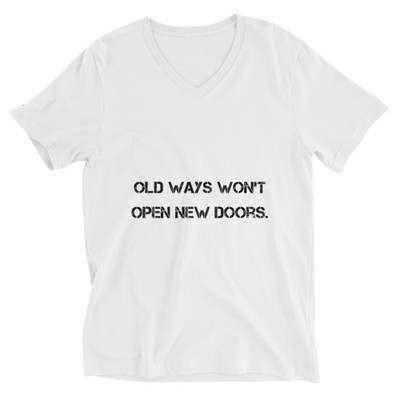 quick view Bella + Canvas Old ways won't open new doors. - Bella + Canvas - Unisex Short Sleeve V-Neck Jersey Tee PRINT-26978 MSRP: $32.41 b3005 Unisex Short Sleeve VNeck Jersey Tee/bbr/This unisex tee has a classic vneck cut and fits like a wellloved favorite br/ Made of 100 combed and ringspun cotton br/ Preshrunk fabric br/ Unisex fit br/ Side seams br/ Coverstitched vneck... Add to Wish List Add to My Wish List Create New Wish List Compare