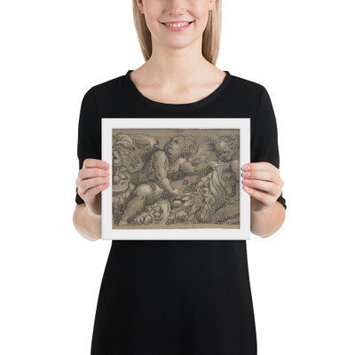 Design for a Frieze with an Armorial Trophy and Three Female Figures - Anonymous, Italian, 19th century - 1800–1900 - Enhanced Matte Paper Poster