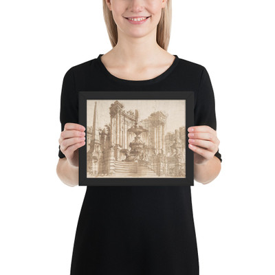 Design for a Stage Set: Semi-Circular Architectural Ruins, Fountains, and an Obelisk. - Ferdinando Galli Bibiena - 1657–1743 - Enhanced Matte Paper Poster
