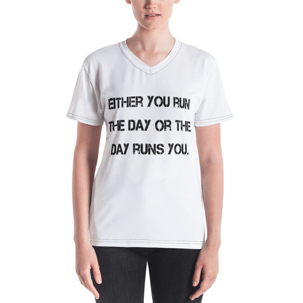 Either you run the day or the day runs you. - Women's V-Neck T-Shirt Motivational quotes 7811589