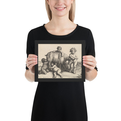Five boys, two satyrs and a goat - Wenceslaus Hollar - 1647 - Premium Luster Photo Paper Framed Poster