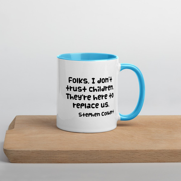 Folks, I don't trust children. They're here to replace us. - Stephen Colbert - Ceramic Mug with Color Funny quotes 7848918