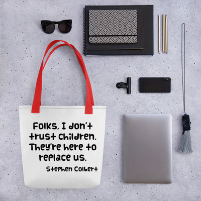 Folks, I don't trust children. They're here to replace us. - Stephen Colbert - Econscious - Organic Cotton Tote Bag PRINT-58907