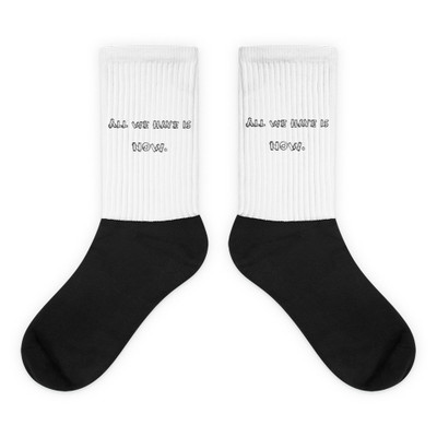 quick view All we have is NOW. - Black Foot Socks Funny quotes 7827604 MSRP: $19.53 Black Foot Sublimated SocksThese socks are extra comfortable thanks to their cushioned bottom. The foot is black with artwork printed along the leg with crisp, bold colors that won"t fade. • 60% nylon/22% cotton/18% spandex • Crew length •... Add to Wish List Add to My Wish List Create New Wish List Compare