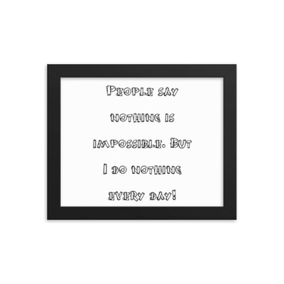 quick view People say nothing is impossible. But I do nothing every day! - Enhanced Matte Paper Framed Poster MSRP: $129.84 Enhanced Matte Paper Framed PosterMake a statement in any room with this framed poster, printed on thick, durable, matte paper. The matte black frame that"s made from wood from renewable forests adds an extra touch of class. • Alder, semi-hardwood... Add to Wish List Add to My Wish List Create New Wish List Compare