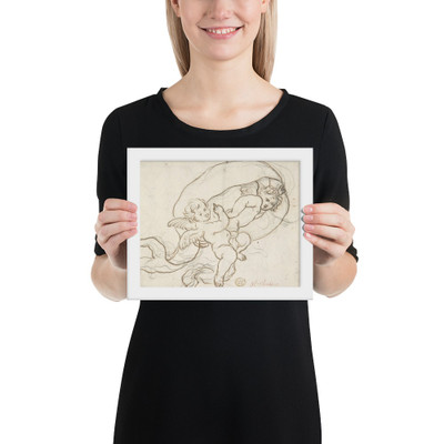quick view Two Flying Putti - Anonymous, Italian, Roman-Bolognese, 17th century - 17th century - Enhanced Matte Paper Framed Poster MSRP: $129.84 Enhanced Matte Paper Framed PosterMake a statement in any room with this framed poster, printed on thick, durable, matte paper. The matte black frame that"s made from wood from renewable forests adds an extra touch of class. • Alder, semi-hardwood... Add to Wish List Add to My Wish List Create New Wish List Compare