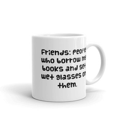Friends: people who borrow my books and set wet glasses on them. - Ceramic Mug with Color Funny quotes 7848937