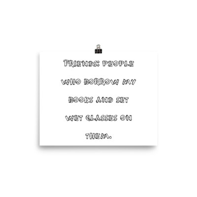 Friends: people who borrow my books and set wet glasses on them. - Enhanced Matte Paper Framed Poster