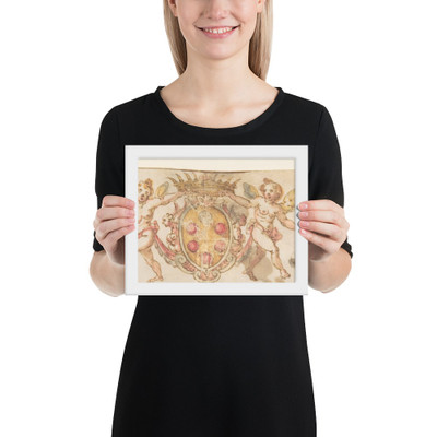 Frieze with Medici Coat of Arms and Putti (Embroidery Design?) - Anonymous, Italian, 16th century - 16th century - Premium Luster Photo Paper Framed Poster