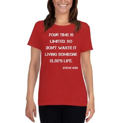 quick view Gildan Your time is limited. So don't waste it living someone else's life. - Steve Jobs - Gildan - Ladies' Ultra Cotton T-Shirt MSRP: $25.11 2000L Ladies" Ultra Cotton T-ShirtThis ladies-cut t-shirt will ensure that your wholesale t-shirt is perfectly fit and of good quality. It will satisfy your needs as it is available in many different... Add to Wish List Add to My Wish List Create New Wish List