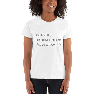 quick view Gildan Don't rush things. They will happen when they are supposed to. - Gildan - Ladies' Ultra Cotton T-Shirt MSRP: $25.11 2000L Ladies" Ultra Cotton T-ShirtThis ladies-cut t-shirt will ensure that your wholesale t-shirt is perfectly fit and of good quality. It will satisfy your needs as it is available in many different... Add to Wish List Add to My Wish List Create New Wish List