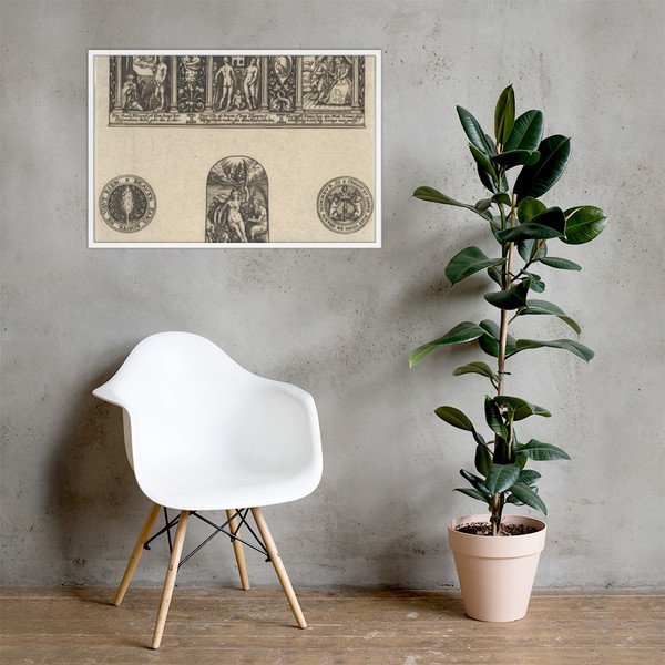 Horizontal Panel with a Thimble Design Below a Frieze with Three Scenes in Arches - Johann Theodor de Bry - 1580–1600 - Enhanced Matte Paper Framed Poster