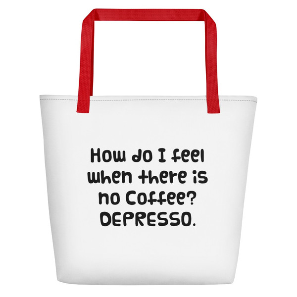 How do I feel when there is no Coffee? DEPRESSO. - Beach Bag Funny quotes 7831258