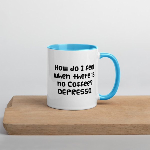 How do I feel when there is no Coffee? DEPRESSO. - Ceramic Mug with Color Funny quotes 7848093